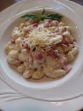 Our homemade creamy Alfredo sauce over gnocchi topped with shredded Romano cheese.
